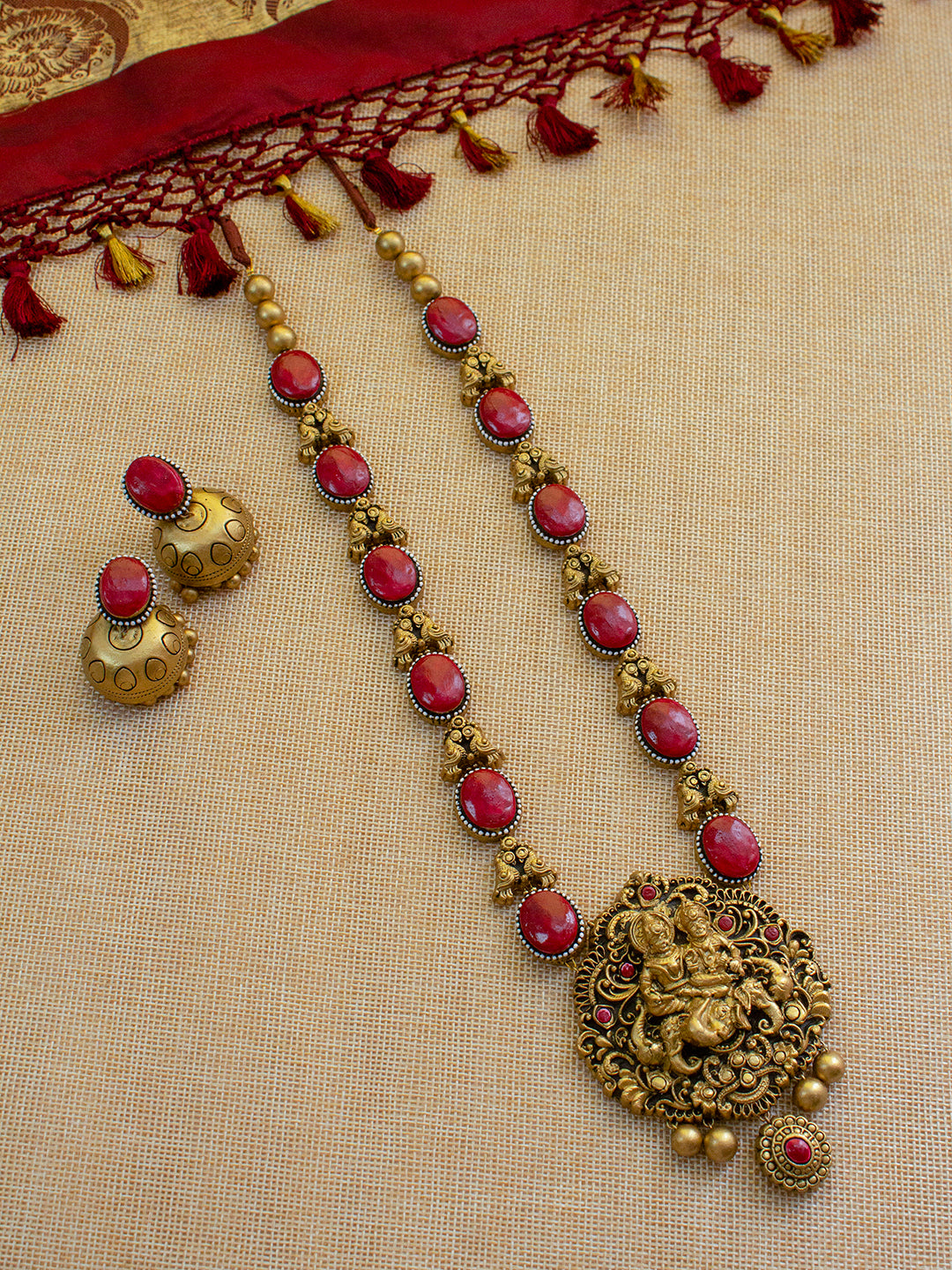 Home Divya Mandira — Beautifully Handcrafted Temple Terracotta Jewellery Set in Maroon & Antique Gold
