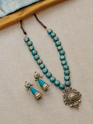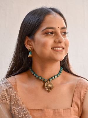 Home Beautifully Handmade Floral Terracotta Jewellery Set in Teal & Antique Gold