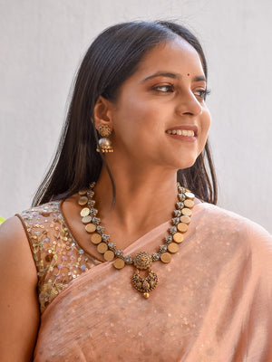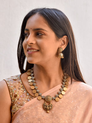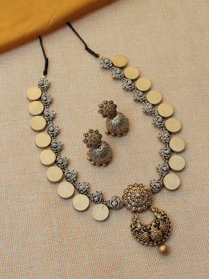 Beautifully Handmade Golden Beige & Antique Silver Coin Deisign Terracotta Jewellery Set