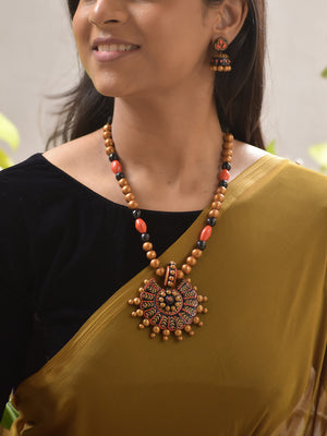 Home Bold Tribal Fan Terracotta Necklace Set in Red and Black Earrings