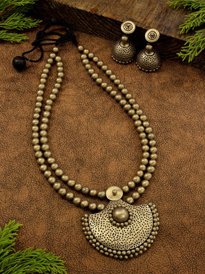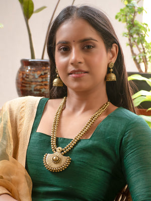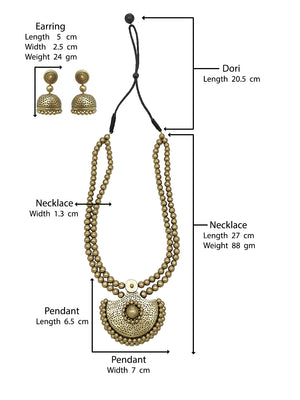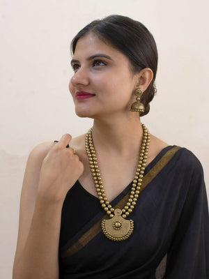 Chandramukhi — Designer Handmade Halfmoon Design Pendant Two Layered Antique Gold Color Terracotta Necklace Set