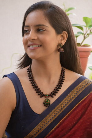 Please ensure you preserve the terracotta jewelry inside the foam sheet in the plastic box given by Jumkey. You can wipe it off with a dry cloth if there is any sweat or dust on the terracotta jewelry. Always ensure terracotta jewelry is the last thing to wear and the first thing to remove when you’re back from a function or event. Keep the terracotta jewelry away from perfume and chemicals (cosmetics). Ensure you apply your makeup, foundation, cosmetics, perfume first and then wear the terracotta jewelry in the end. In short, terracotta jewellery should be the last thing to be worn and the first thing to be removed.