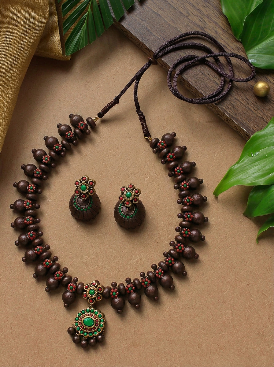 Home Coco — Mocha Brown Floral Design Contemporary Style Handmade Terracotta Necklace Set