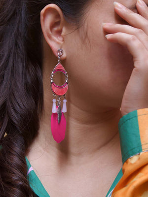 Crescent Moon Design Pink Drop Earring