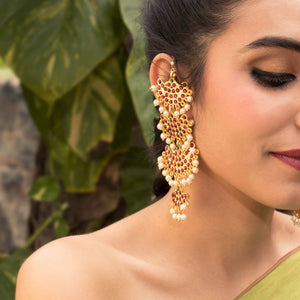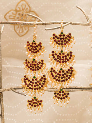 Designer 4 Layered Pendant Earring With Kemp Stones