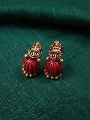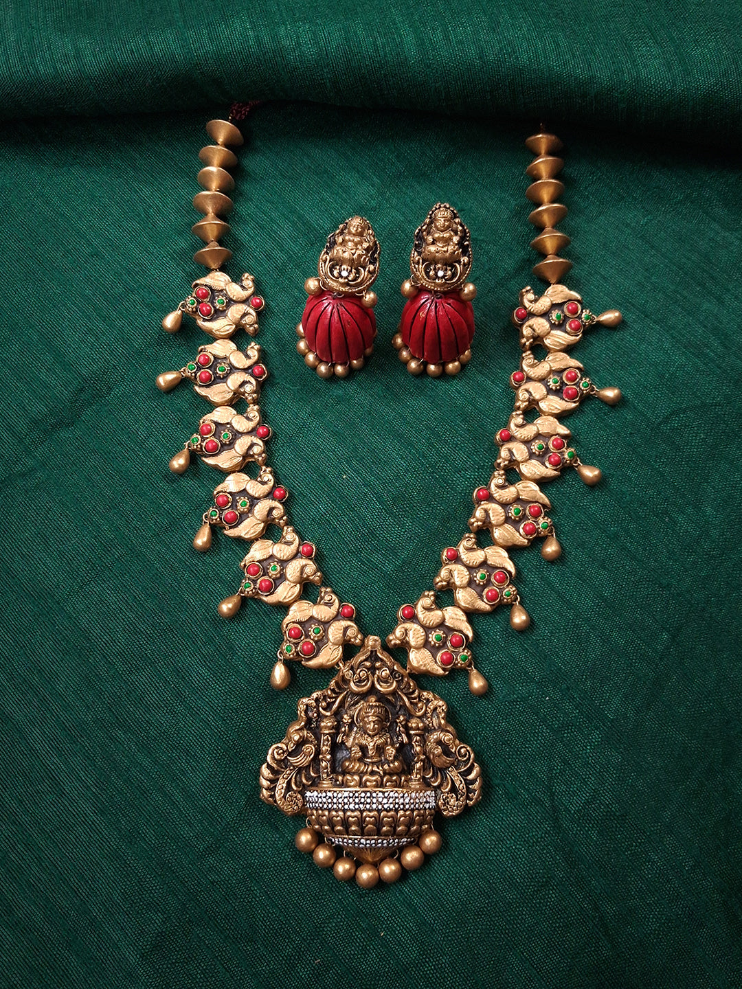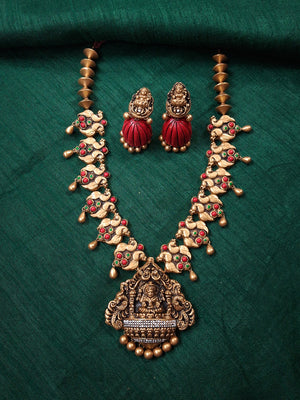 Divya Parrot Lakshmi Terracotta Necklace Set With Jhumkas