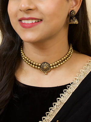 Floral Design Two Layered Victorian Choker Handmade Terracotta Necklace Set