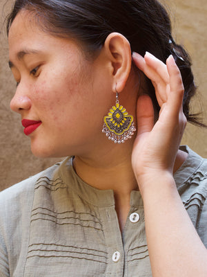 Floral Design Yellow Dangler Afghani Earring