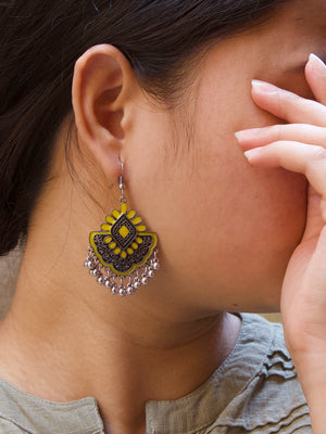 Home Floral Design Yellow Dangler Afghani Earring