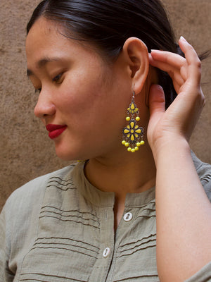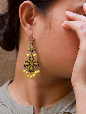 Home Floral Design Yellow Dangler Afghani Earring