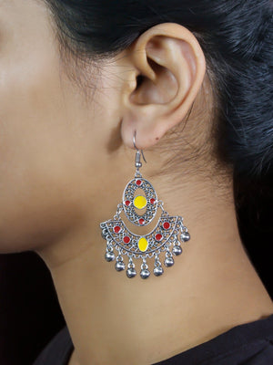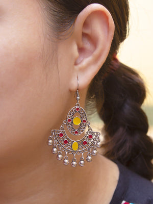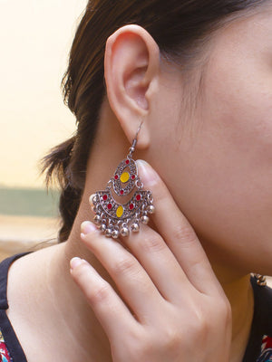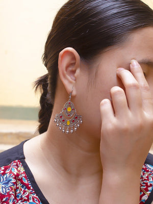 Geometric Design Red and Yellow Dangler Afghani Earring