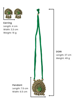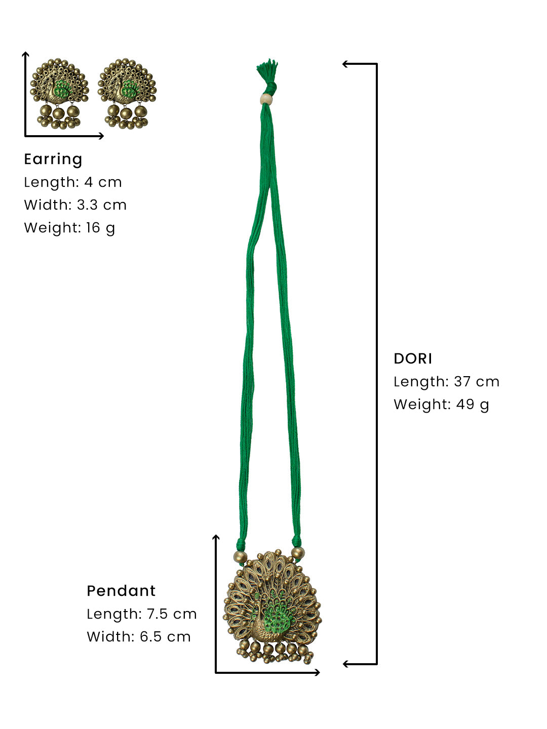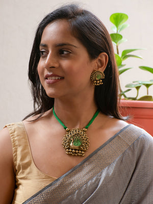 Gold and Green Peacock Design Handmade Terracotta Necklace Set