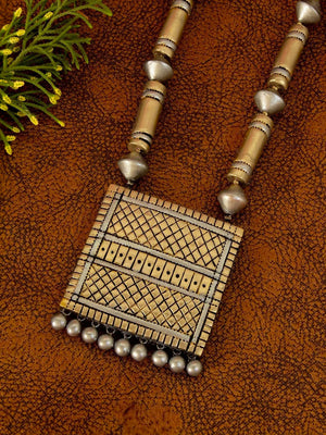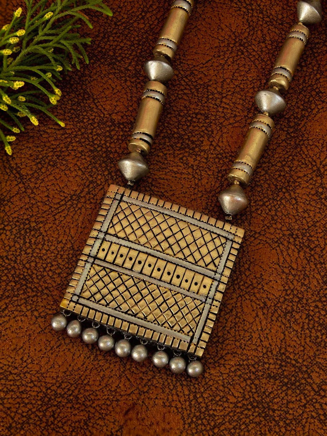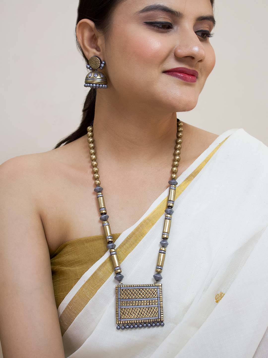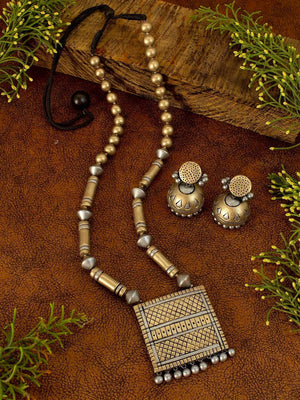 Gold Colour Square Shape Pendant Terracotta Necklace Set