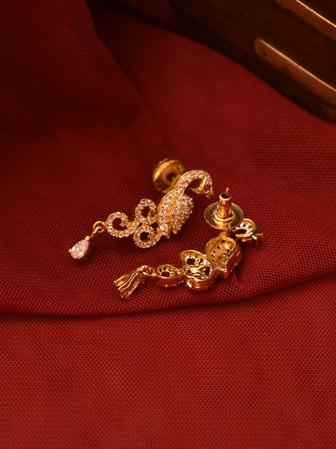 Gold Plated Peacock Design Cz Stones Drop Earring