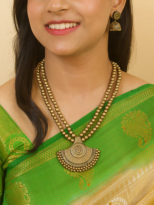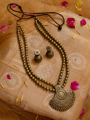 Half Moon Engraved Pendant Two Layered Mala Handmade Terracotta Necklace Set