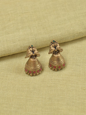 Peacoria - Handcrafted Antique Geometric Bead Terracotta Necklace Set with Red-Green Stone Pendant and Peacock Motif Earrings