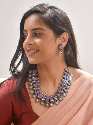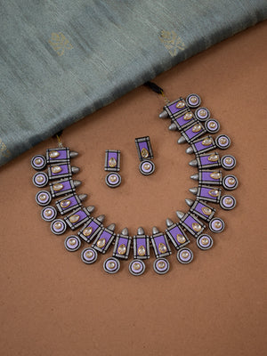 Home Handcrafted Contemporary Terracotta Jewellery Set in Purple, Black & Silver
