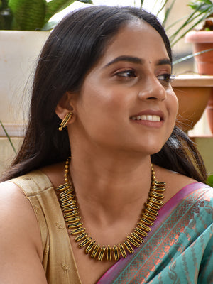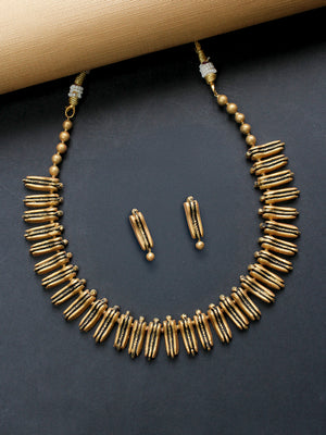 Handcrafted Fringe Design Terracotta Jewellery Set in Antique Gold