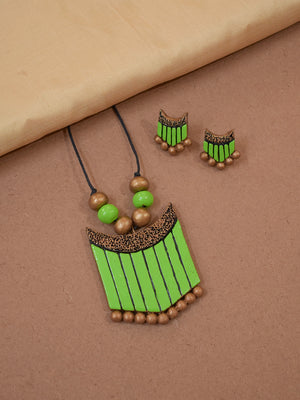 Handcrafted Geometric Terracotta Jewellery Set in Green & Antique Gold