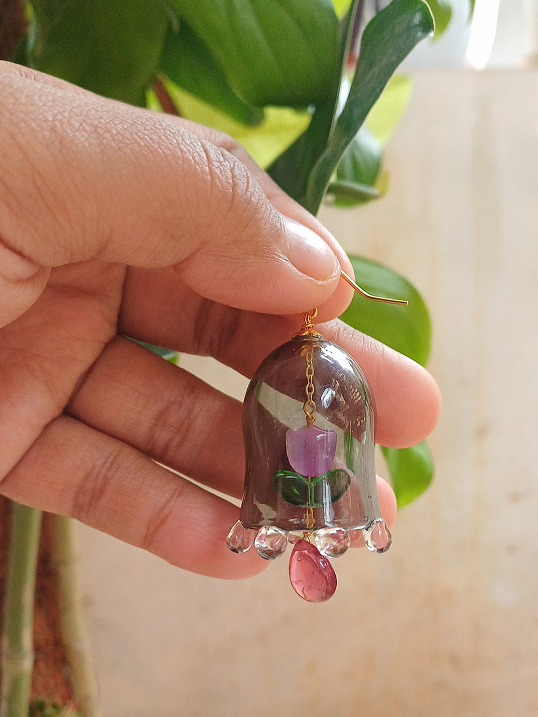 Handcrafted Glass Bell-Shaped Floral Earrings with Colorful Beads