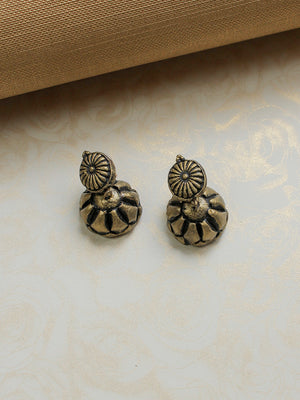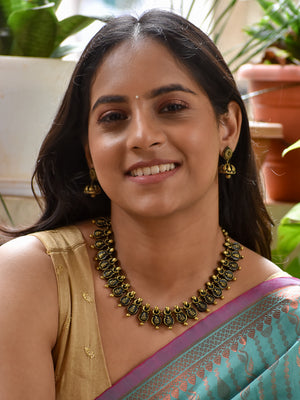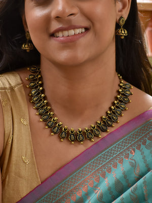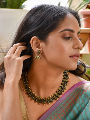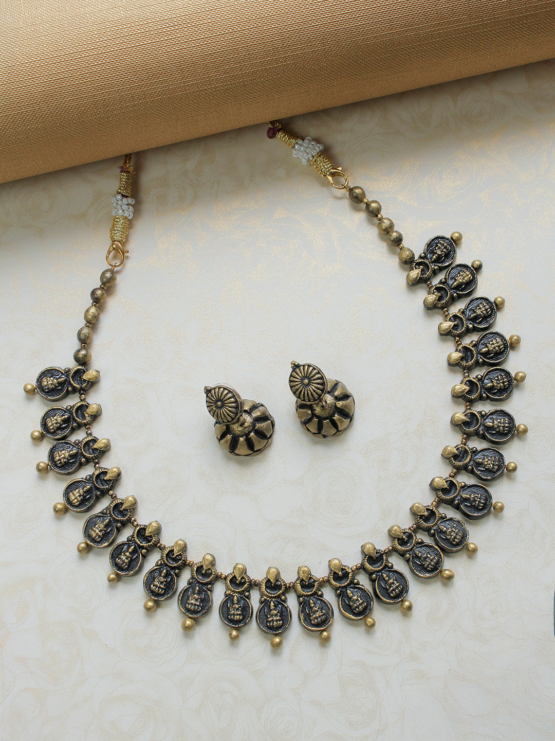 Handcrafted Lakshmi Coin Motif Terracotta Jewellery Set in Antique Gold