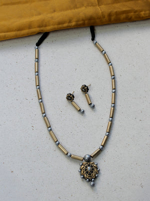 Pushpanjali — Handcrafted Pipe Beads Design Floral Pendant Terracotta Jewellery Set in Antique Gold and Silver