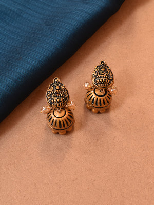 Home Handcrafted Temple Jewelry Set – Antique Gold Necklace with Cream Beads & Matching Earrings