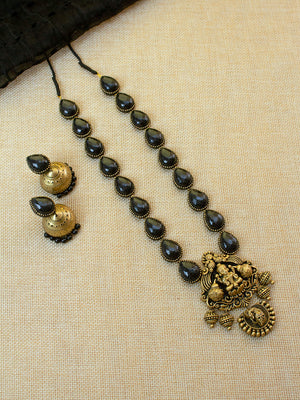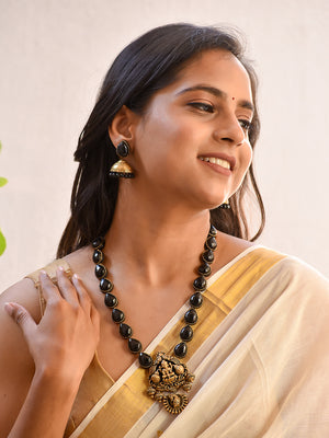 Home Handcrafted Temple Terracotta Jewellery Set in Jet Black & Antique Gold