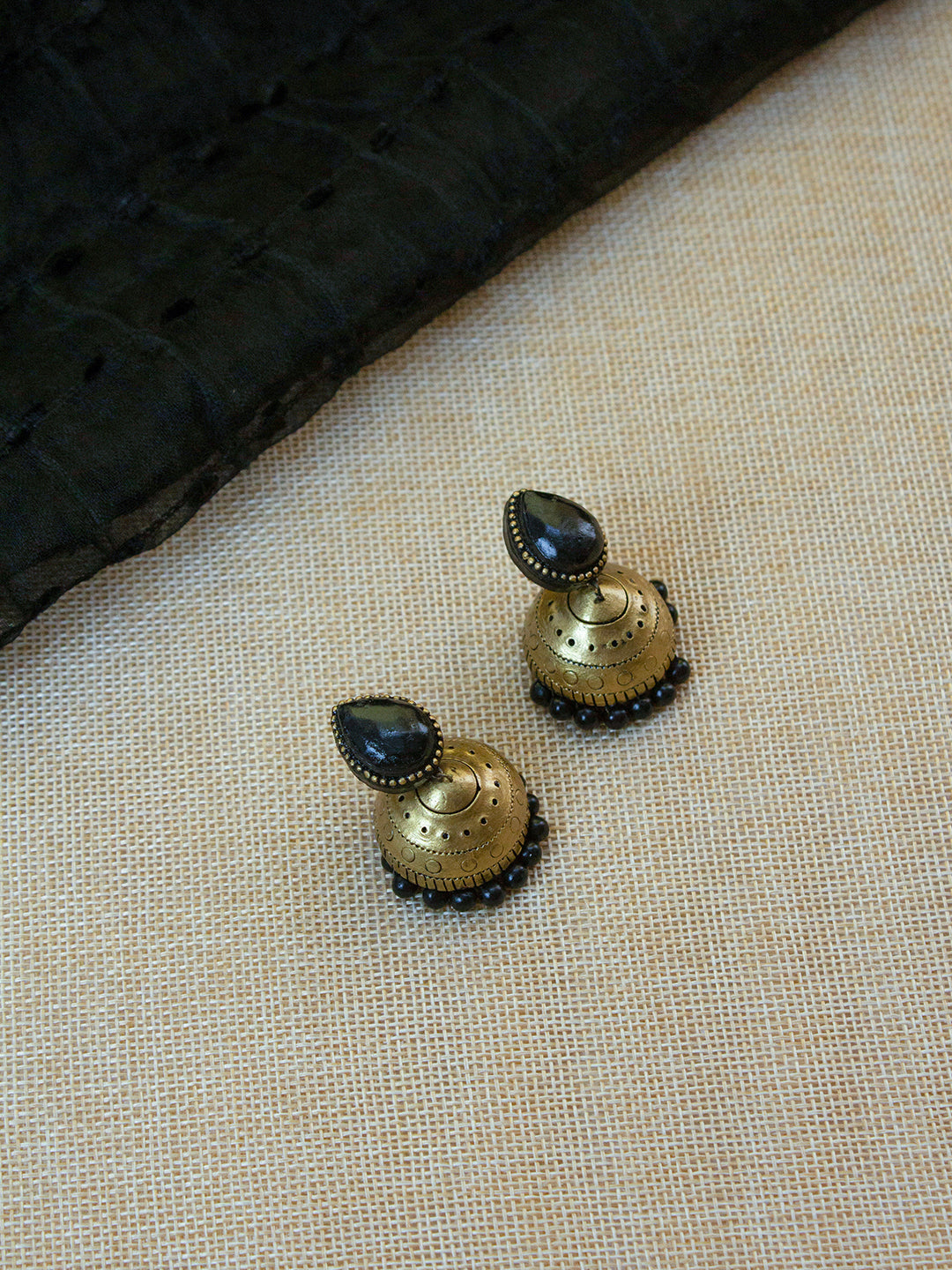 Handcrafted Temple Terracotta Jewellery Set in Jet Black & Antique Gold