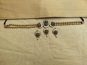 Handcrafted Terracotta Antique Gold Choker Set with Red Floral Motifs