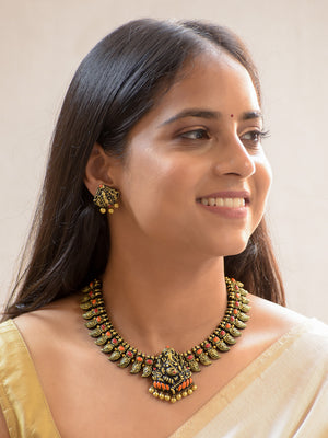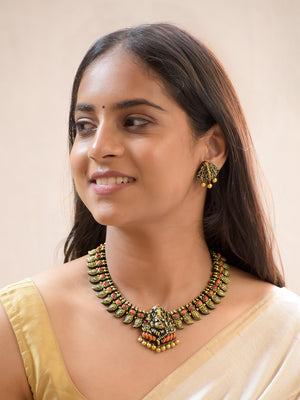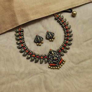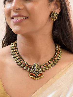 Handcrafted Terracotta Antique Gold Ganesha Design Jewellery Set in Red & Orange Accents