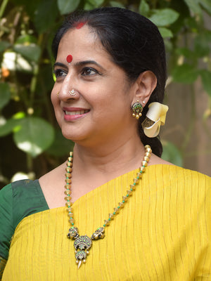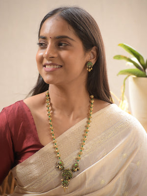Handcrafted Terracotta Cone Design Peacock Motif Jewellery Set in Green & Antique Gold