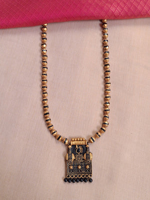 Handmade Terracotta Antique Gold and Black Temple Pendant Necklace