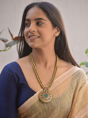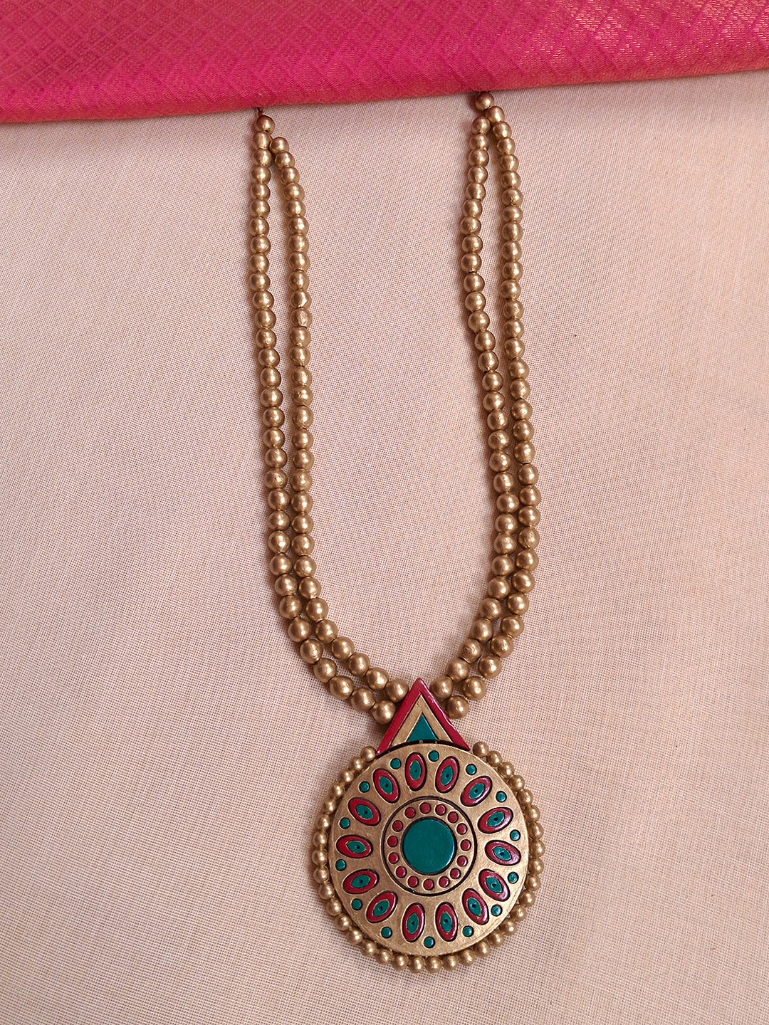 Handmade Terracotta Dual-Layer Gold Beaded Round Mandala Necklace