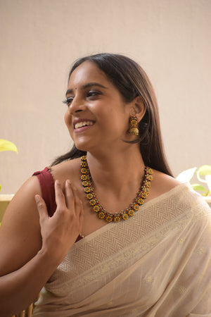 Pushkara - Handmade Terracotta Floral Necklace Set – Yellow Red & Antique Gold Earrings