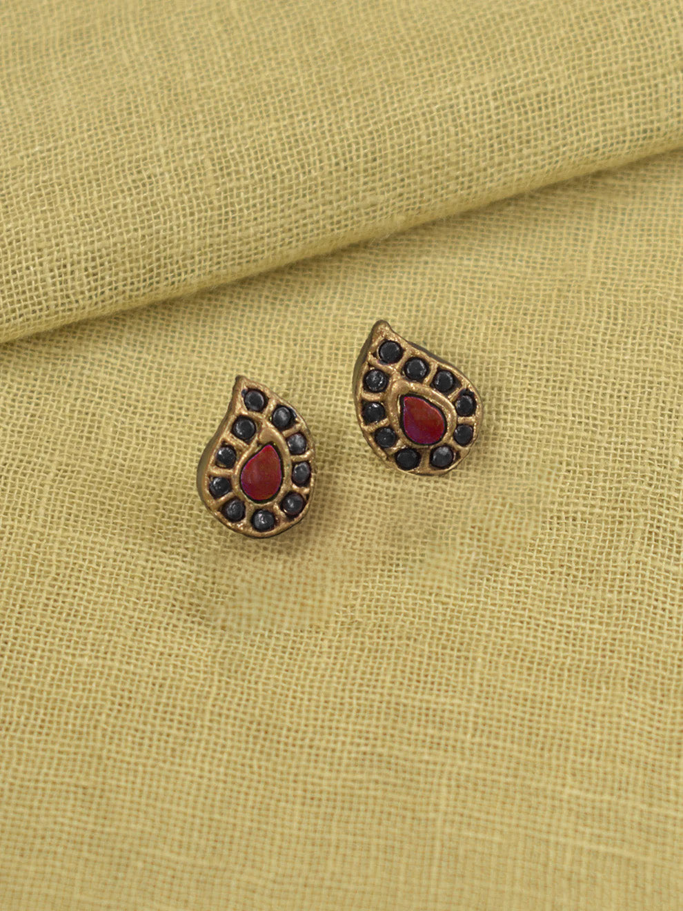 Home Mayurika - Handmade Terracotta Twin Peacock Choker Necklace Set – Antique Gold & Red Earrings