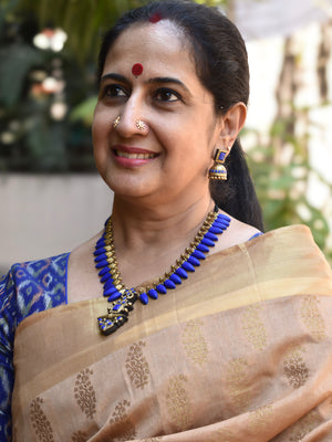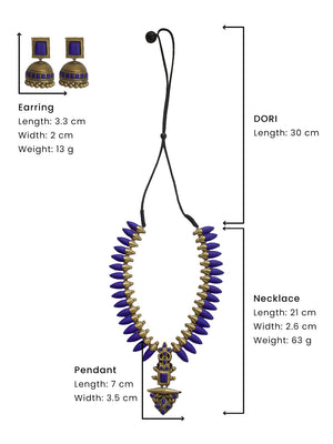 Home Ink Blue Antique Gold Floral Art Design Contemporary Handmade Terracotta Necklace Set