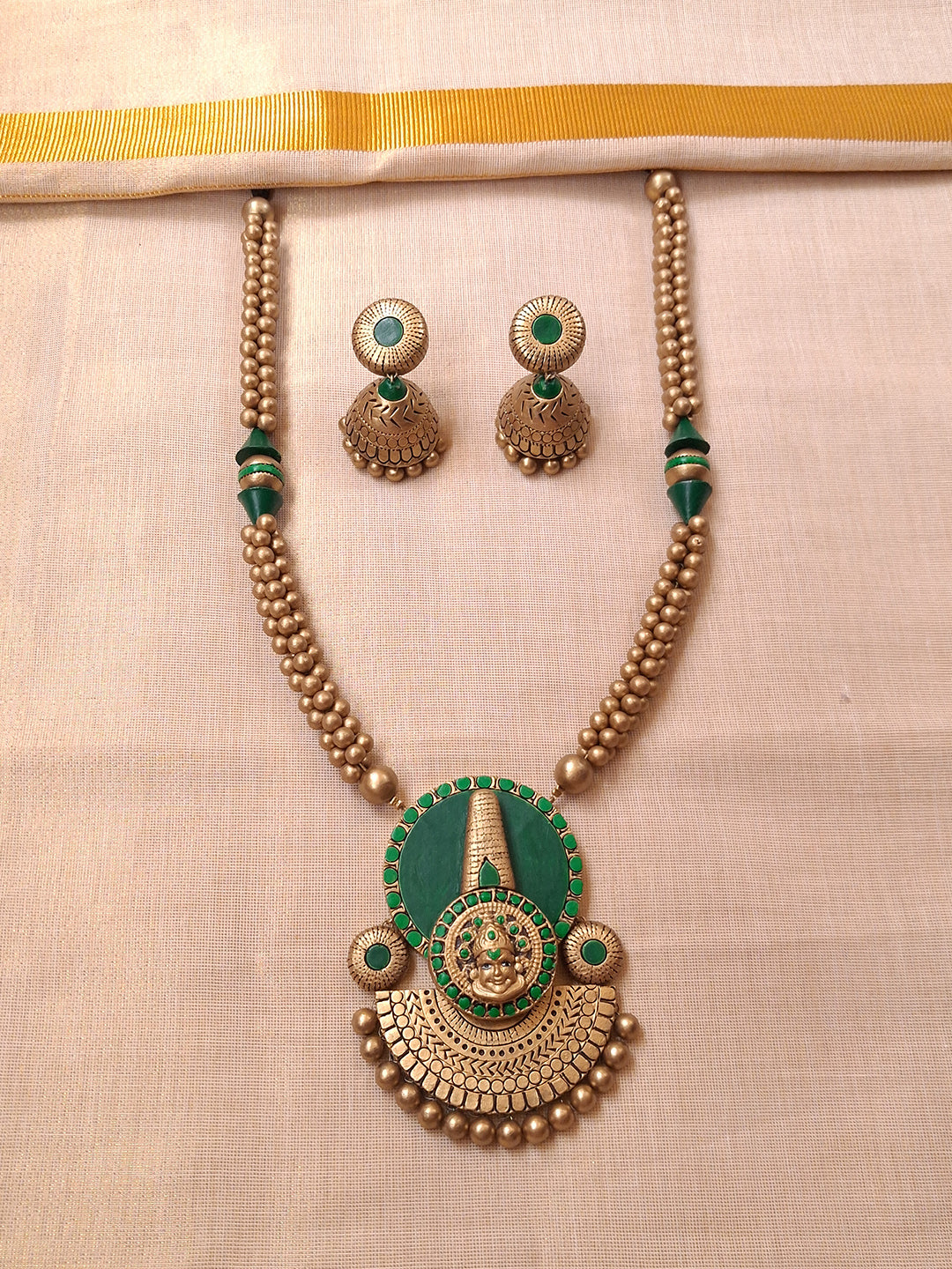 Kathakali Nritya Roopam — Kathakali Design Hand Painted Finish Terracotta Jewellery Set With Jhumkas
