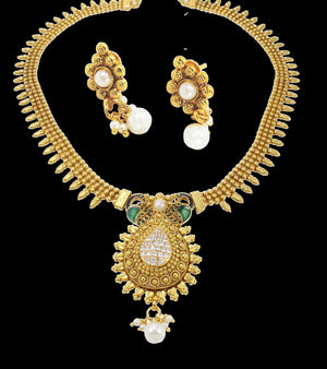 Antique Copper Long 3 Line Necklace With Droppings
