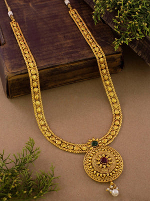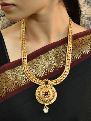 Gold Plating Geometric Design Copper Material Long Necklace With Pearl Droppings