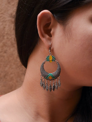 Lotus Design Yellow and Green Dangler Afghani Earring