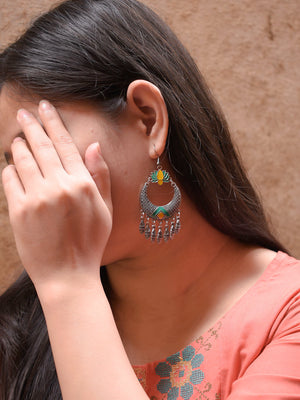 Home Lotus Design Yellow and Green Dangler Afghani Earring