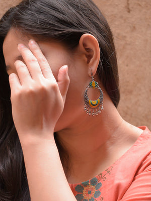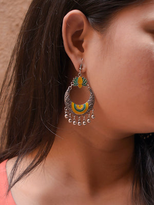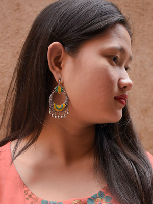Lotus Design Yellow and Green Dangler Afghani Earring