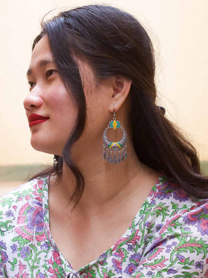 Lotus Design Yellow and Green Dangler Afghani Earring