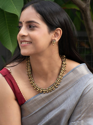 Mango Design Temple Antique Gold Red White Green Kundan Handmade Terracotta Necklace Set