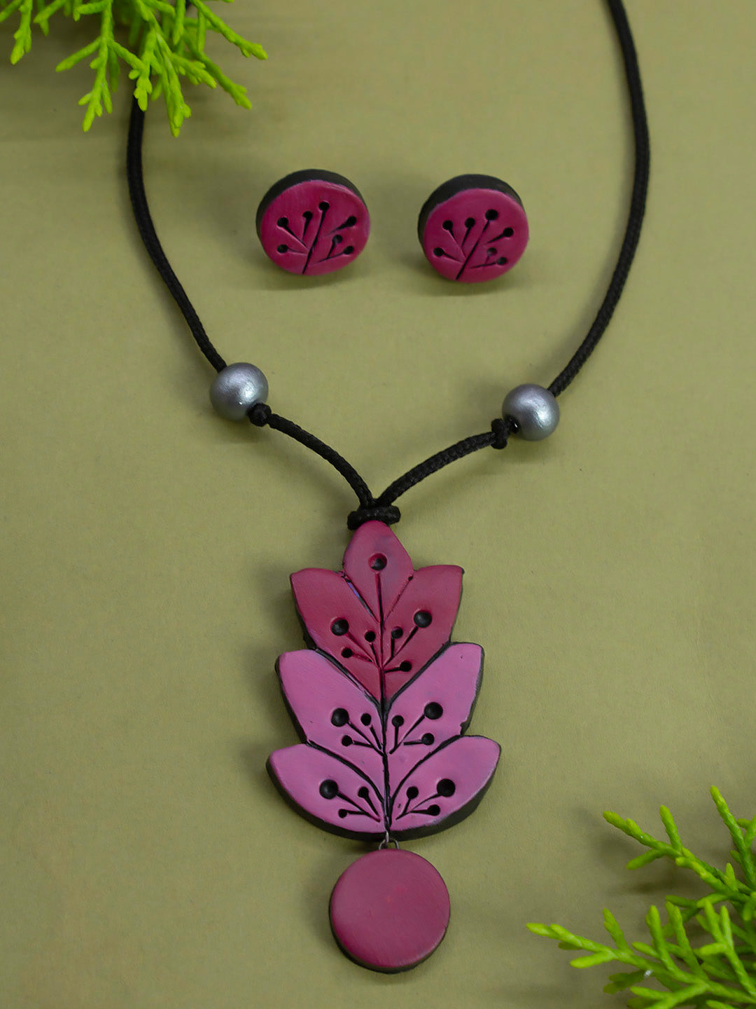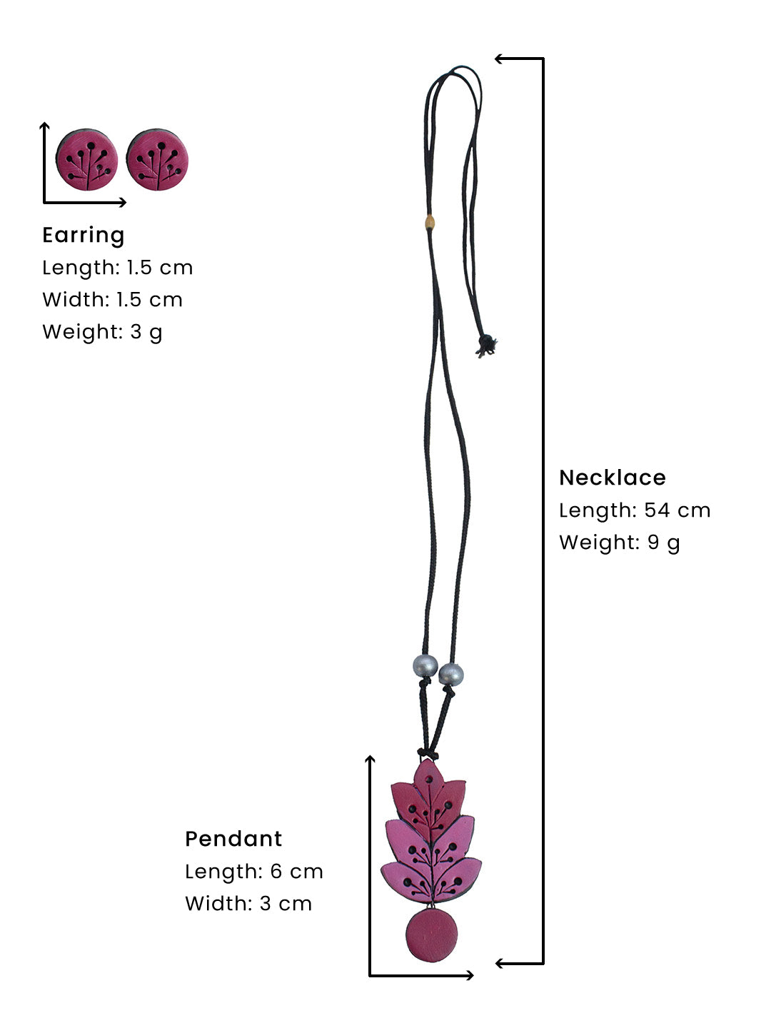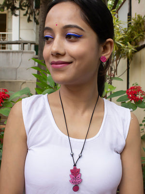 Minimalistic Lemon Yellow Flower Pink Green Design Handmade Terracotta Necklace