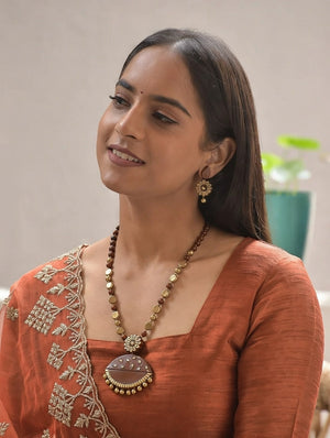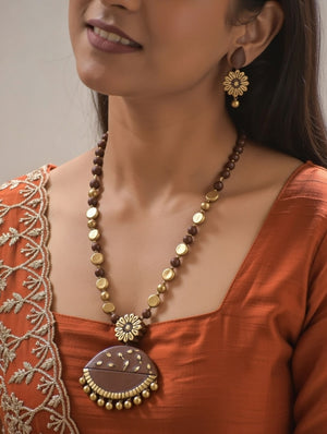 Mrittika Bloom 🤎 — Handcrafted Terracotta Floral Statement Necklace Set in Earthy Brown & Antique Gold