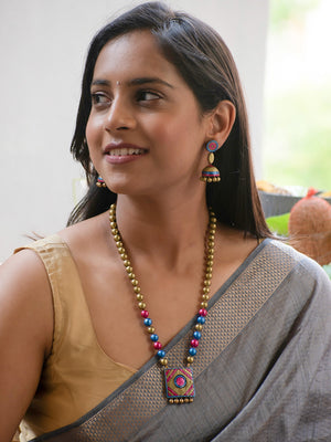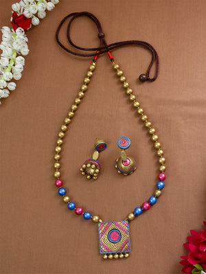 Home Multicolor Square Design Handmade Terracotta Necklace Set