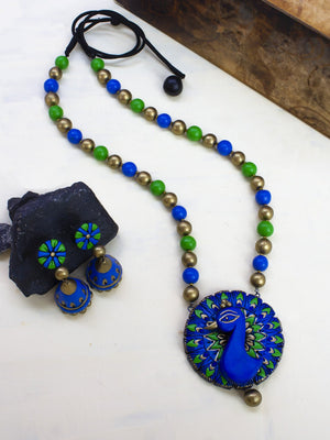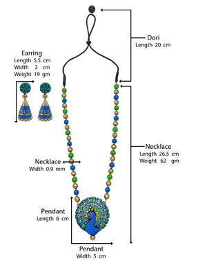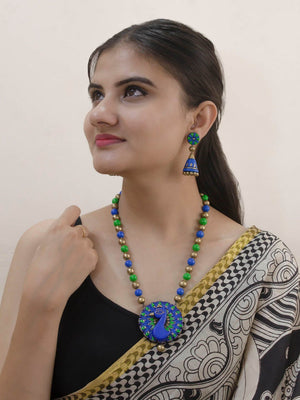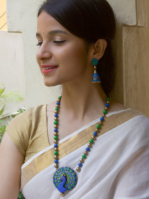 Peacock Design Hand Painted Finish Terracotta Jewelry Set