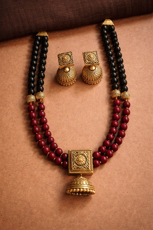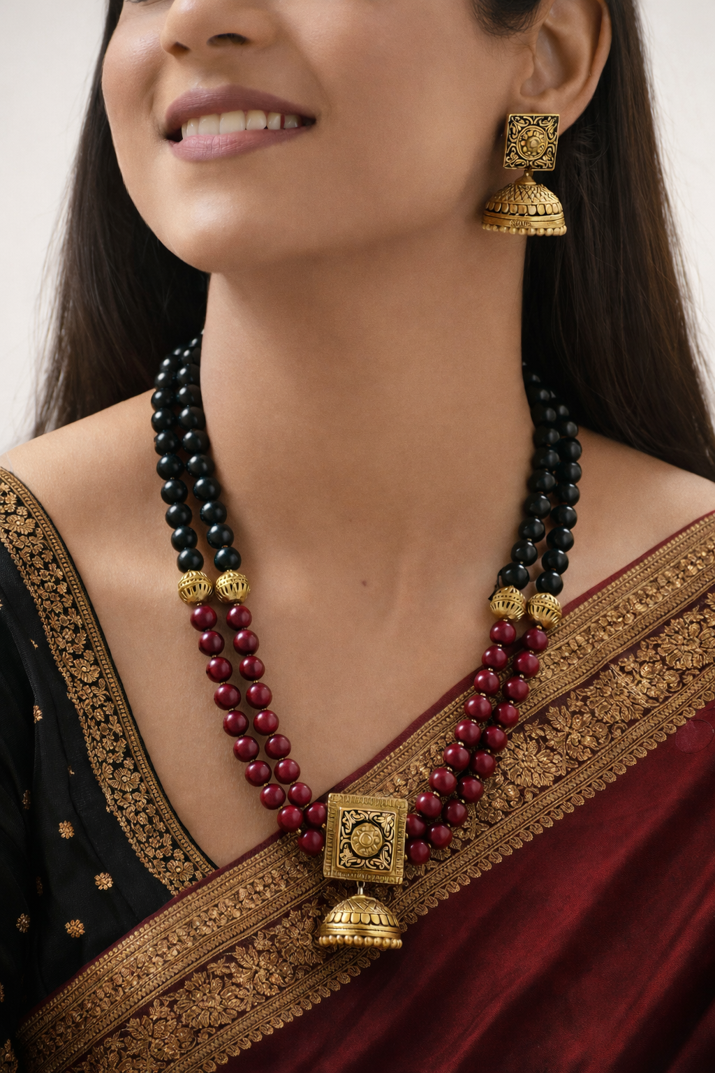 Noir Viraasat 🖤 — The Royal Terracotta Dual Strand Necklace with Jhumka Set
